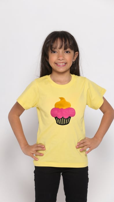 CAMISETA INFANTIL EM APLICAÇÃO - CUPCAKE