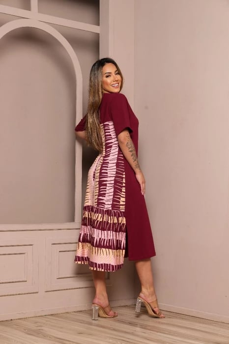 • DETALHE: ESTAMPA COM BABADO NA BARRA