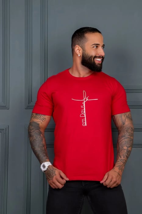 CAMISETA MASCULINA EM APLICAÇÃO - FÉ EM DEUS