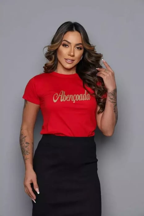 T-SHIRT EM APLICAÇÃO - ABENÇOADA