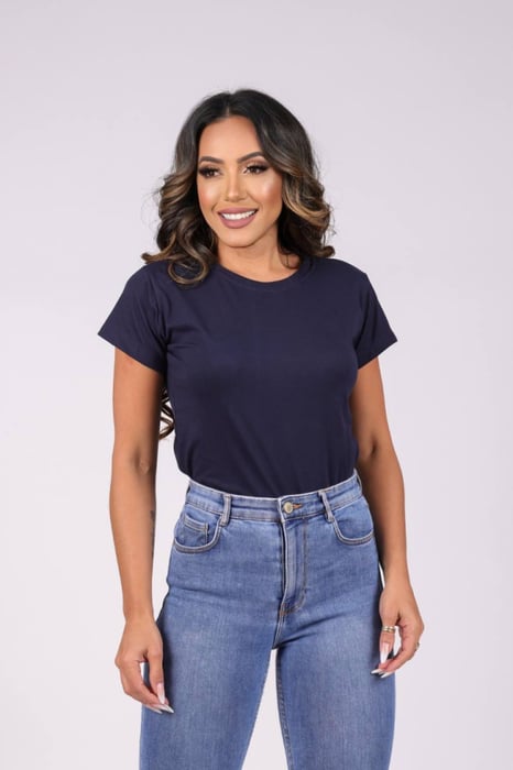 T-SHIRT FEMININA LISA MENEGOTTI AZUL MARINHO
