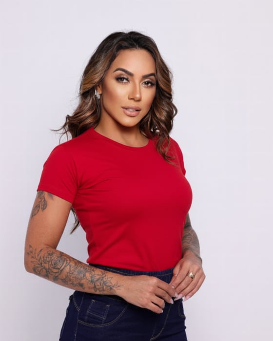 T-SHIRT FEMININA LISA MENEGOTTI VERMELHO