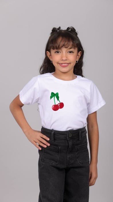 T-SHIRT INFANTIL - APLICAÇÃO CEREJINHAS LAÇO