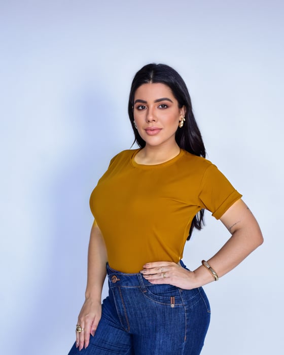 T-SHIRT BÁSICA - LISA SEM SILK - MOSTARDA