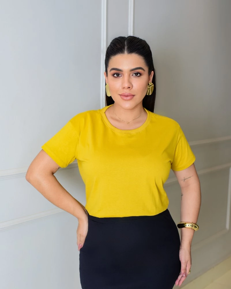 T-SHIRT BÁSICA - LISA SEM SILK - MOSTARDA